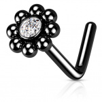 Piercing nez or 14 carats coeur serti - Rose - Tige L