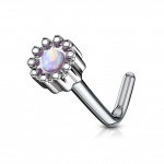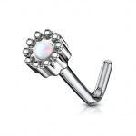 Piercing nez tige L à fleur abstraite sertie d'une Opale bleue