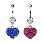 Piercing nombril à coeur d'opale rose