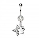 La pureté des gemmes du piercing qui s'impriment en relief sur notre nombril concurrence l'éclat de l'empreinte magique d'un trio d'étoiles au charme irréel.