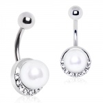 La barre arquée en acier sécurisé, surmontée d'une perle aux éclats miroitants et munie d'une fixation inférieure éclairée par une belle pierre de synthèse claire ou bleu azur contribue grandement à son charme.
