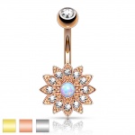 Le style vintage de ce bijou lui confère une intemporalité qui, loin de passer inaperçue, attire le regard et suscite l'admiration. Le choix de ce piercing pour nombril témoigne d'une personnalité affirmée, qui n'a pas peur d'assumer une féminité puissante et d'éclat. La sphère dorée située à la partie supérieure du bijou finalise l'ensemble avec grâce, assurant à la fois fixation et harmonie visuelle.
