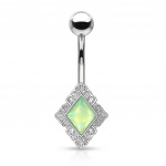 La structure en acier inoxydable 316L de la tige courbée garantit une insertion aisée, assurant ainsi que le confort s'allie à la mode sans compromis. La boule polie en gris métal parachève ce bijou, témoignant d'une attention toute particulière portée sur chaque détail. Le jeu de transparence et la luminosité des zircons apportent une brillance exceptionnelle, insufflant une vie nouvelle à ton nombril.