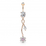 Piercing nombril à trois fleurs pavée de pierres