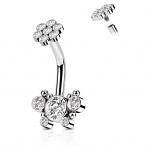 Piercing nombril acier Noir à fleur et papillon strass (filetage interne)