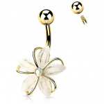 Piercing nombril Argenté à fleur blanche sertie