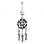 Piercing nombril avec barre pavée de pierres et cascade de chainettes