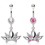 Piercing nombril avec boule sertie et pierre en coeur
