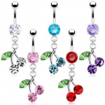 Piercing nombril avec éléphant jaune décoré de fleurs bleues