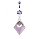 Piercing nombril avec plaque losange pavée de strasses