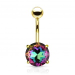 La barre arquée et ses deux embouts sont en acier de qualité. La tige est surmontée d'une petite perle de fixation aux reflets métalliques.