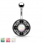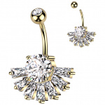 Piercing nombril bouclier floral plaqué or