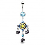 Piercing nombril bouton de fleur doré à druse rose