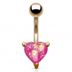 Piercing nombril cuivré à coeur d'opale vert foncé