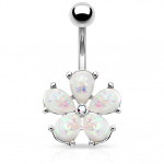 Piercing nombril cuivré fleur à pétales d'opale et strass