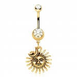 Piercing nombril disques strass (filetage interne) - Plaqué or