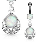 Piercing nombril doré à coeur d'opale blanche