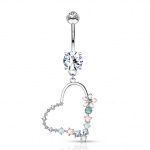 Piercing nombril doré à coeur de fleurs multicolores