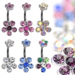 Piercing nombril Doré à fleur blanche sertie