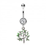 Piercing nombril doré avec croix, chaines et breloques