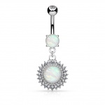 Il se positionne avec une tige concave en acier teinté sécurisé et deux embouts sphériques asymétriques. Ils sont sertis d'une splendide pierre de synthèse cristalline.