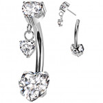 Piercing nombril doré Titane à zirconiums en coeurs à pendentif (push-in)