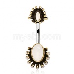 Piercing nombril doré Titane à zirconiums en rond et amande