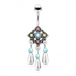 Piercing nombril doré Titane push-in à zirconiums en rond et en losange