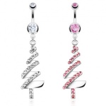 Piercing nombril duo de coeurs et grosse pierre ronde