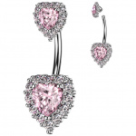 Piercing nombril duo de coeurs scientillants Doré / clair