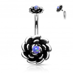 Piercing nombril duo de fleurs à opales bleues (filetage interne)