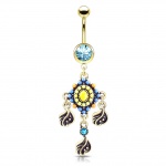 Parfaitement adapté à la femme moderne qui souhaite ajouter une touche de fantaisie à sa tenue, ce bijou symbolise également la transformation et la liberté. Son design intemporel de papillons invite à l'évasion, tout en restant ancré dans un style contemporain. Que tu le portes au quotidien ou pour des occasions spéciales, ce piercing sublime ton nombril et rehausse ta tenue d'une note de couleur et de brillance.