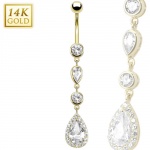 Piercing nombril en or blanc 14 carats à triple pendentif