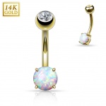 Piercing nombril en or blanc 14 carats avec petite Opale synthétique