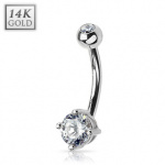 Découvre ce piercing nombril en or 14 carats, élégant et raffiné, orné de deux extrémités serties pour un éclat irrésistible. Confectionné dans un matériau précieux, ce bijou s'adresse aux amatrices de détails sophistiqués et intemporels.