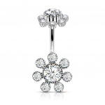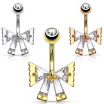 Piercing nombril en or 14 carats avec duo d'anneaux sertis
