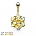 Piercing nombril en or 14 carats avec fleur de zirconium