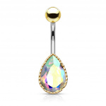 Piercing nombril goutte cuivrée à cristal nuancé - Arc en ciel