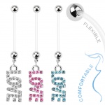 Piercing nombril grossesse à boules paillettées - Bleu