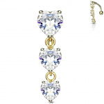 Piercing nombril inversé à trio de coeur zirconium