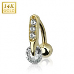Piercing nombril inversé en or blanc 14 carats avec zirconium enclavé