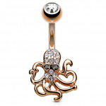 Piercing nombril lune nacrée cuivrée constellée de strass
