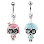 Piercing nombril manchot bleu et jaune serti