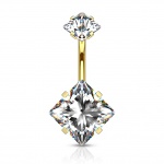 Piercing nombril noir à pierres en losange (filetage interne)