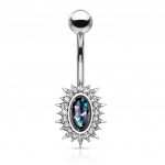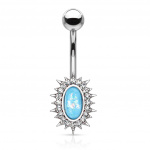 Piercing nombril opale rose et cadre à rayons