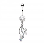 Piercing nombril or jaune 14 carats à ancre de marine pavée zirconiums