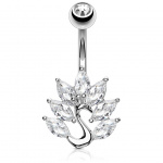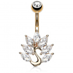 Piercing nombril paon plaqué or à éventail de pierres