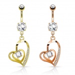 Piercing nombril pendentif double coeur strass