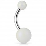 La tige arquée en acier chirurgical 316L est magnifiquement décorée de deux perles en acrylique qui la maintiennent solidement.