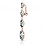 Piercing nombril plaqué or inversé à quatre marquises verticales
